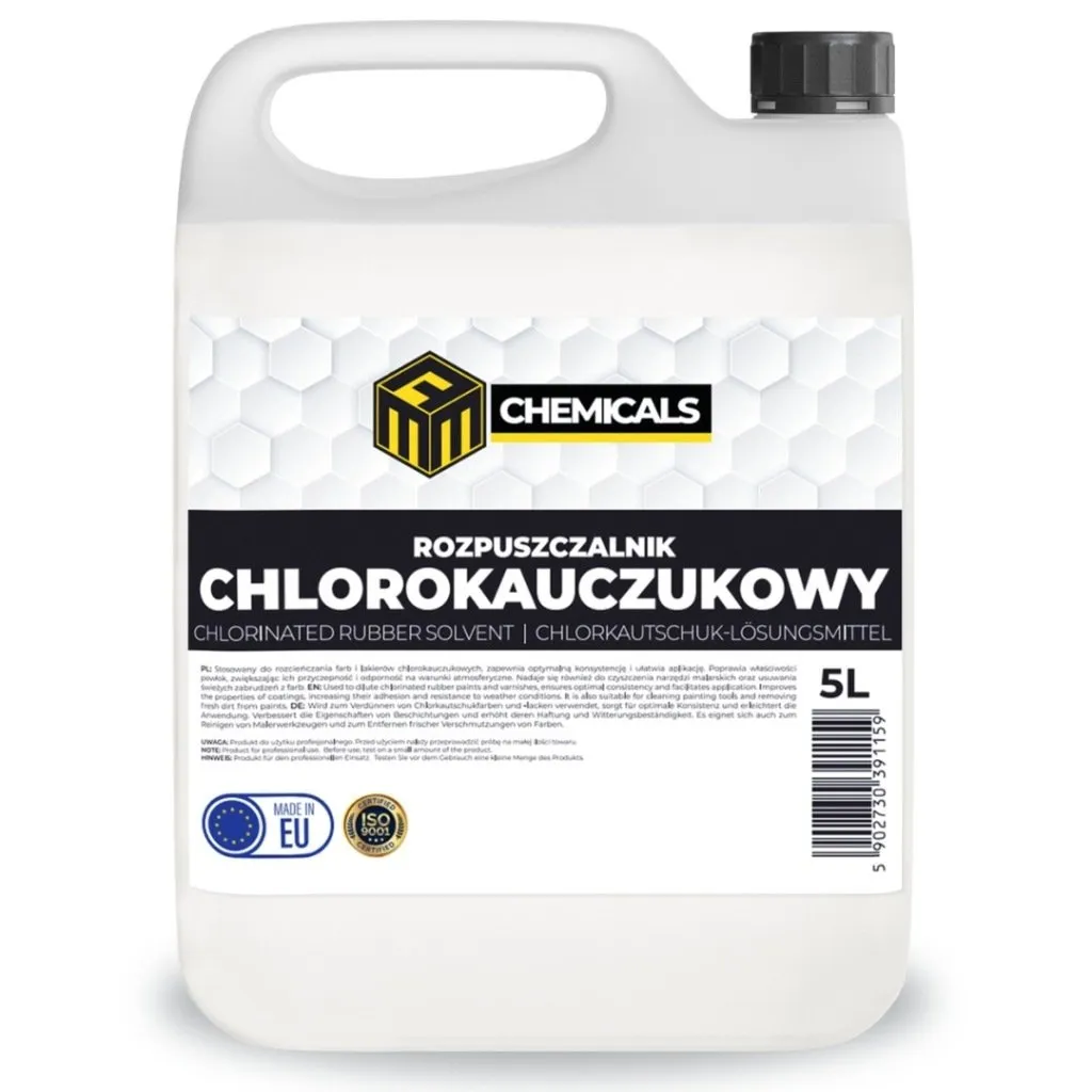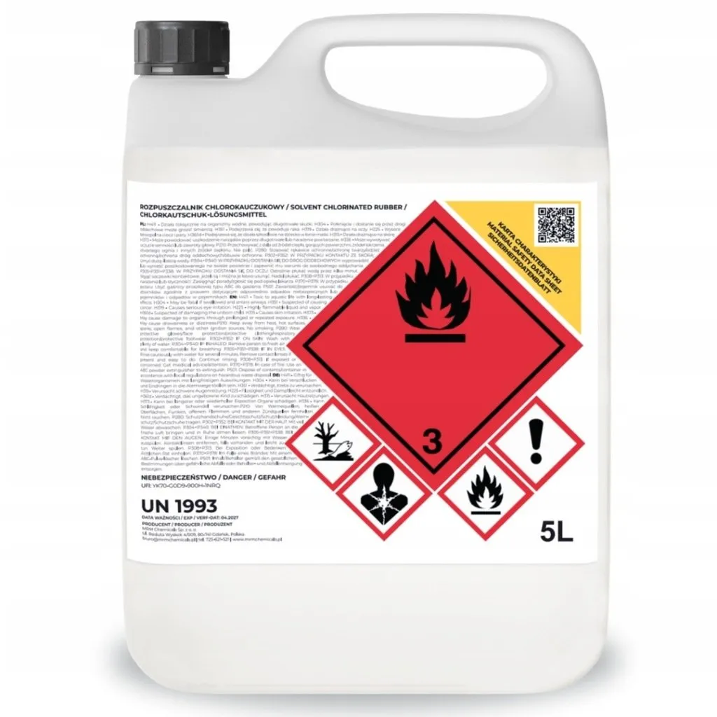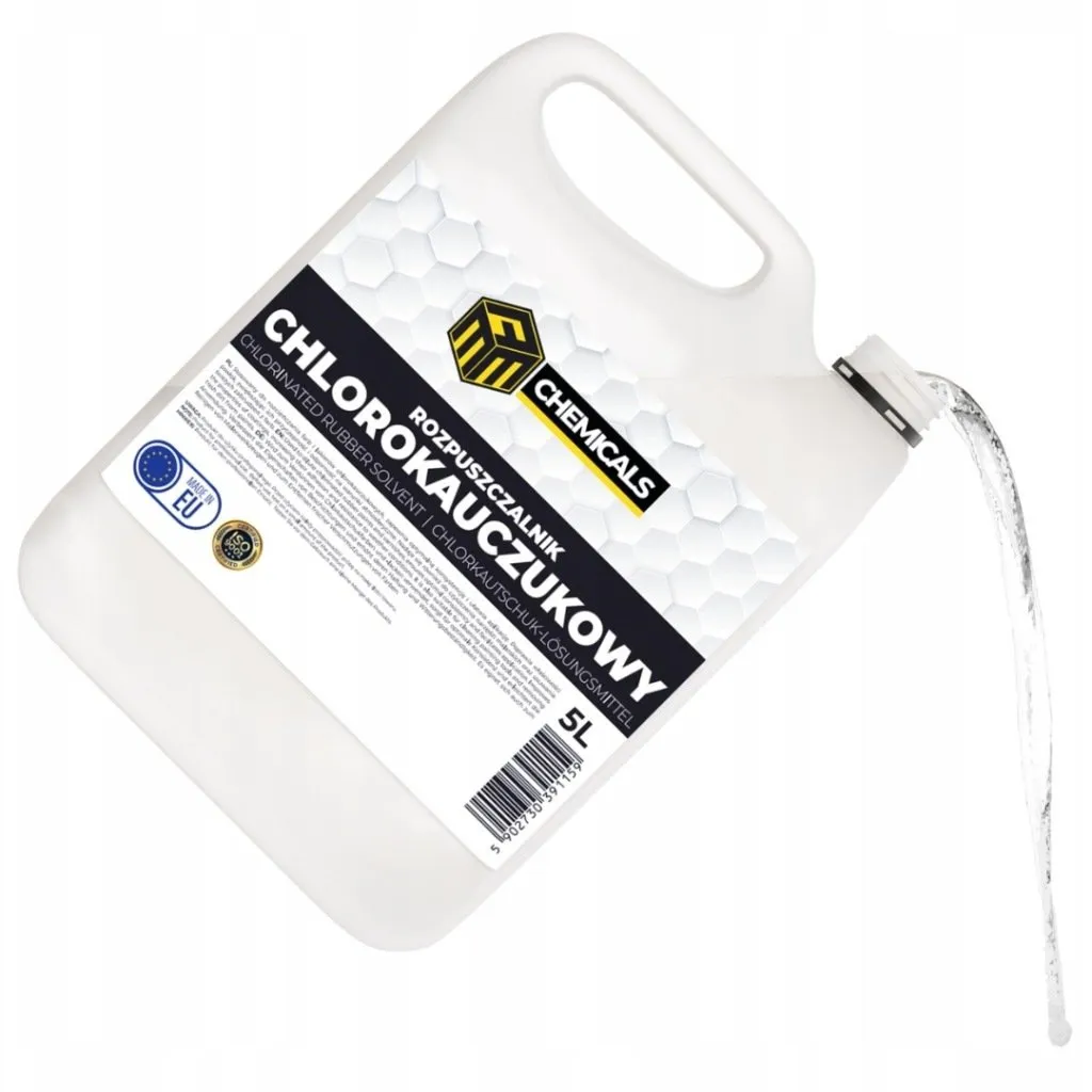 • Usuwanie resztek klejów na bazie chlorokauczuku z narzędzi i form — skutecznie rozpuszcza utwardzone warstwy bez konieczności mechanicznego skraplania.